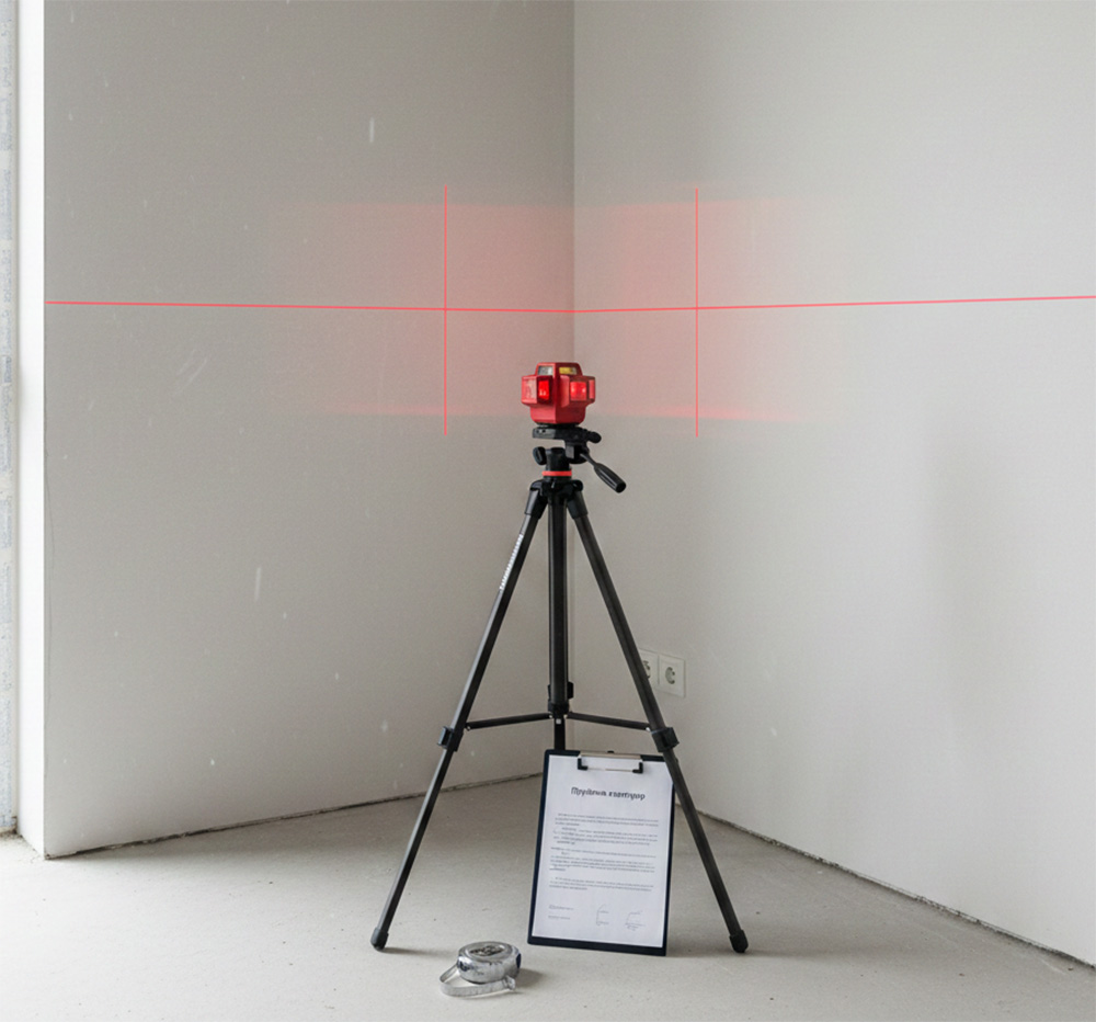 - Лазерный уровень или отвес — чтобы проверить, не «завалены» ли стены.