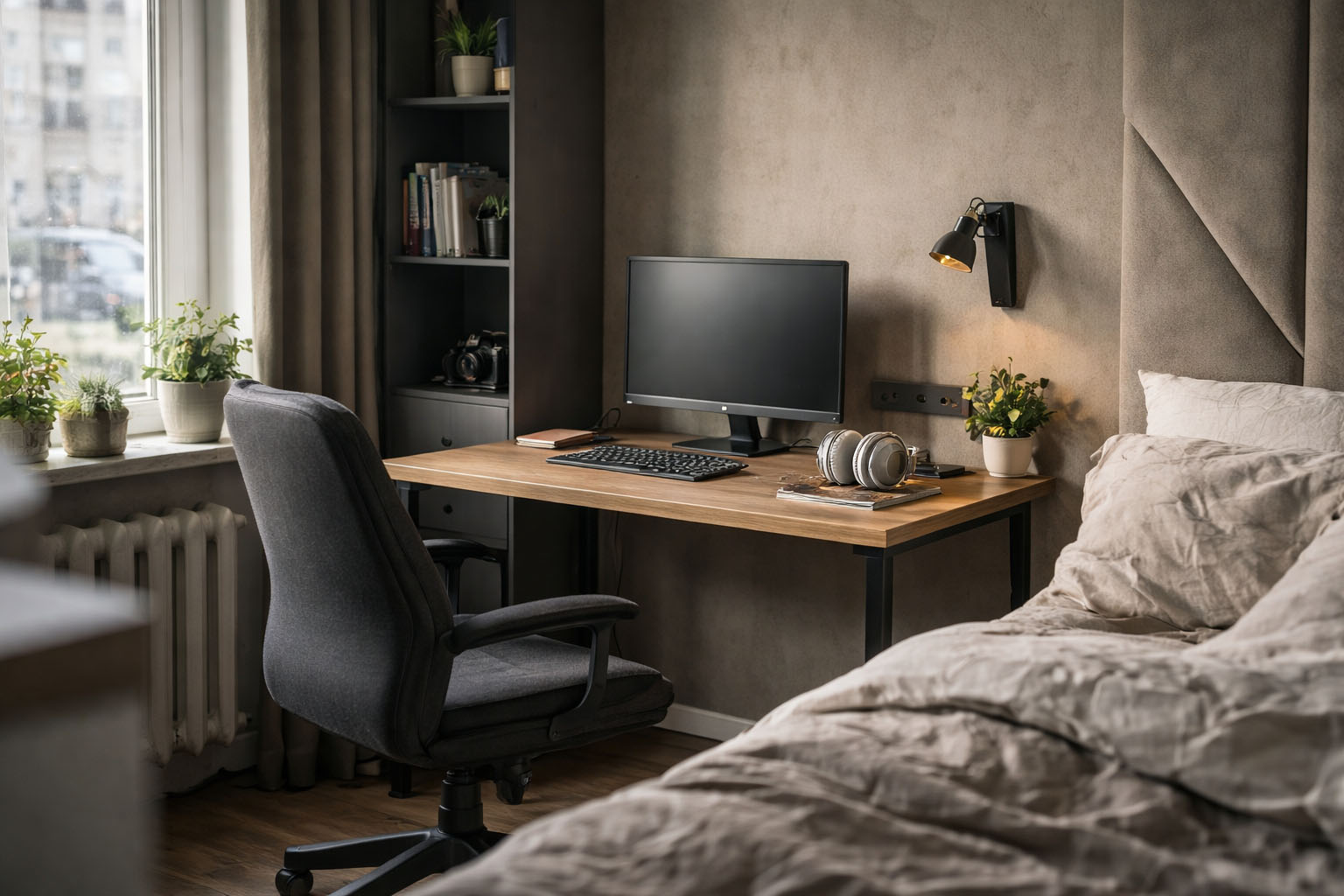 Обычно всё начинается без особых размышлений. Нужно где-то работать, отдельной комнаты нет, а спальня кажется самым спокойным местом в квартире. У меня было ровно так же. Там тихо, дверь можно закрыть, никто не ходит мимо. Я поставил стол, принёс ноутбук и решил, что это временно. Мол, потом что-нибудь придумаю. Первые недели действительно прошли нормально. Работать было удобно, всё под рукой, не нужно ютиться на кухне. Казалось, что решение удачное и никаких проблем не несёт. Но со временем спальня начала меняться, и происходило это почти незаметно.
